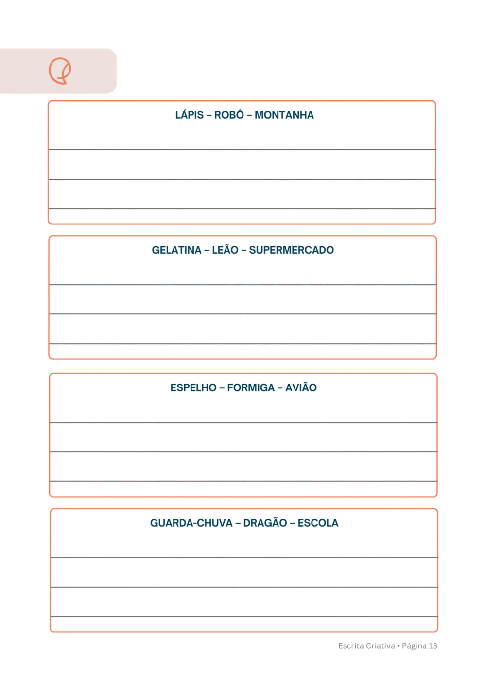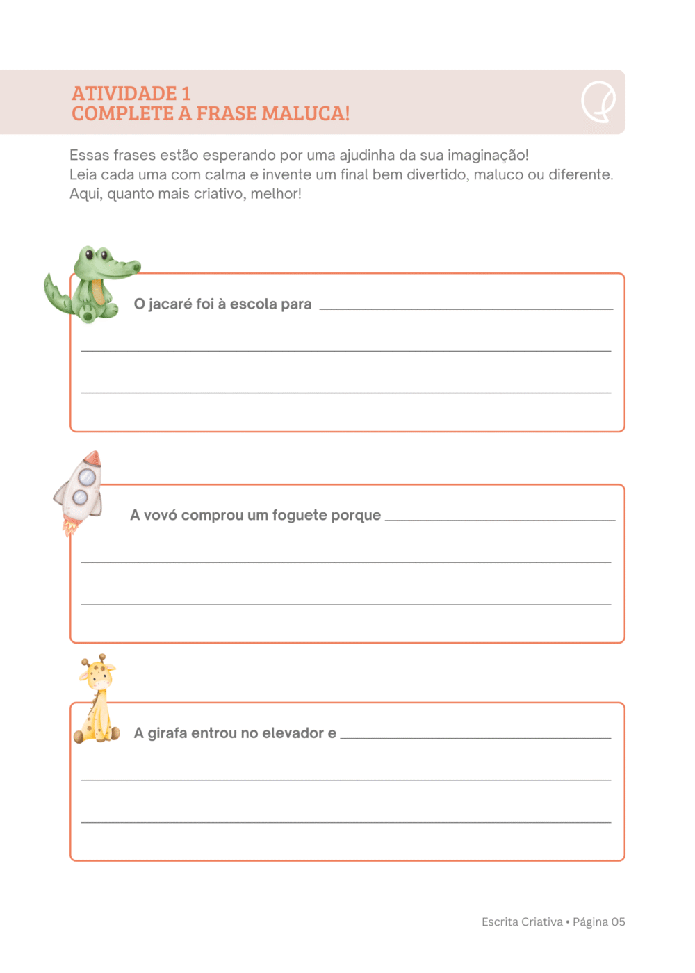 ⨠Livro Escrita Criativa ā Atividades que estimulam a escrita, o vocabulĆ”rio e a organização das ideias, sempre com temas que despertam interesse.