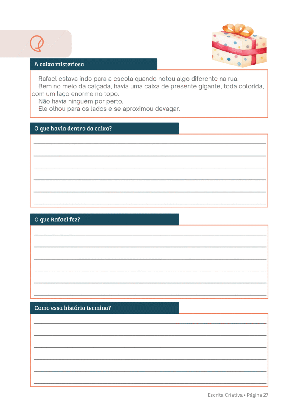 A Escrita Criativa do Pequenas Trilhas foi desenvolvida para ajudar a crianƧa a se expressar melhor, organizar ideias e criar textos claros e criativos.